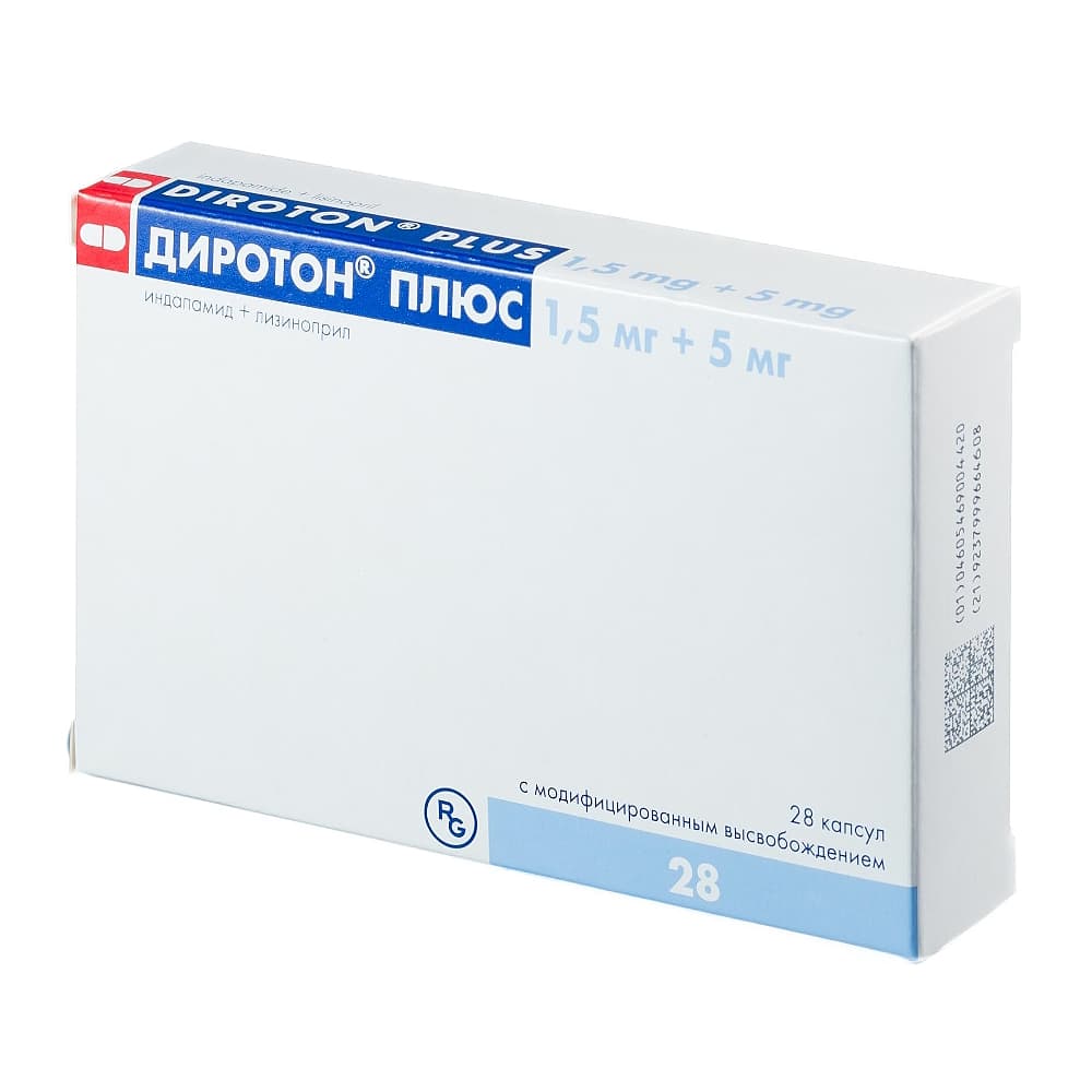Диротон Плюс капсулы с модиф. высвоб. 1,5 мг+5 мг, 28 шт.
