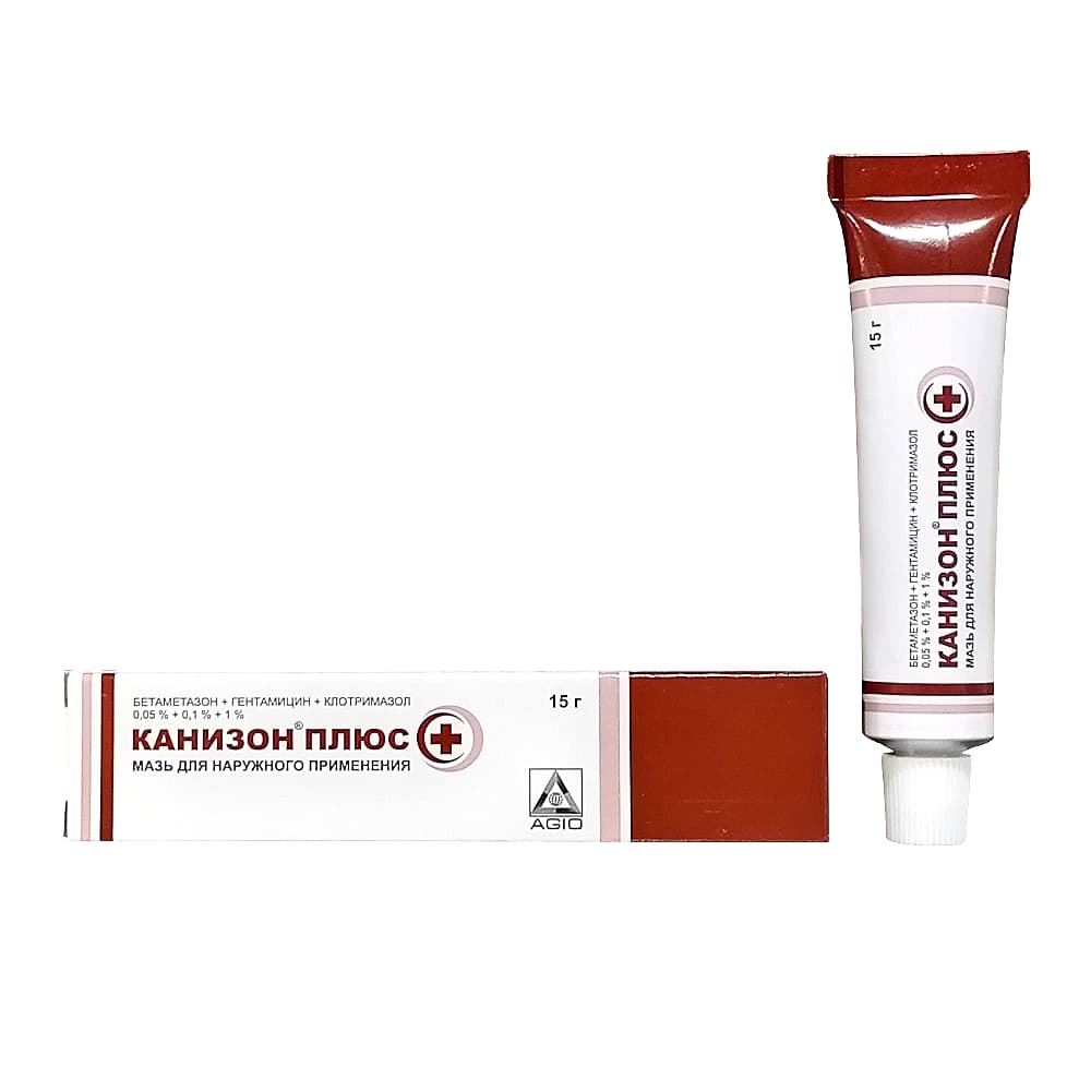 Мазь Канизон® Плюс сочетает в себе противовоспалительный, противозудный, противоаллергический и антиэкссудативный эффект глюкокортикостероида (ГКС) бетаметазона дипропионата с противогрибковой активностью клотримазола и широким антибактериальным действием гентамицина сульфата. Бетаметазон дипропионат эффективен при лечении кортикостероид-чувствительных дерматозов, прежде всего из-за его противовоспалительных, противозудных и сосудосуживающих действий. Клотримазол оказывает противогрибковое действие за счет нарушения синтеза эргостерина, являющегося составной частью клеточной мембраны грибов. Активен в отношении Trichophyton rubrum, Trichophyton mentagrophytes, Epidermophyton floccosum, Microsporum canis, Candida albicans, Malassezia furfur (Pityrosporum orbiculare). Гентамицин является антибиотиком широкого спектра действия из группы аминогликозидов. Действует бактерицидно и обеспечивает высокоэффективное местное лечение первичных и вторичных бактериальных инфекций кожи. Активен в отношении грамотрицательных бактерий: Pseudomonas aeruginosa, Enterobacter aerogenes, Escherichia coli, Proteus vulgaris и Klebsiella pneumoniae; грамположительных бактерий: Staphylococcus aureus (коагулаза-положительные, коагулаза-отрицательные и некоторые штаммы, продуцирующие пенициллиназу).
