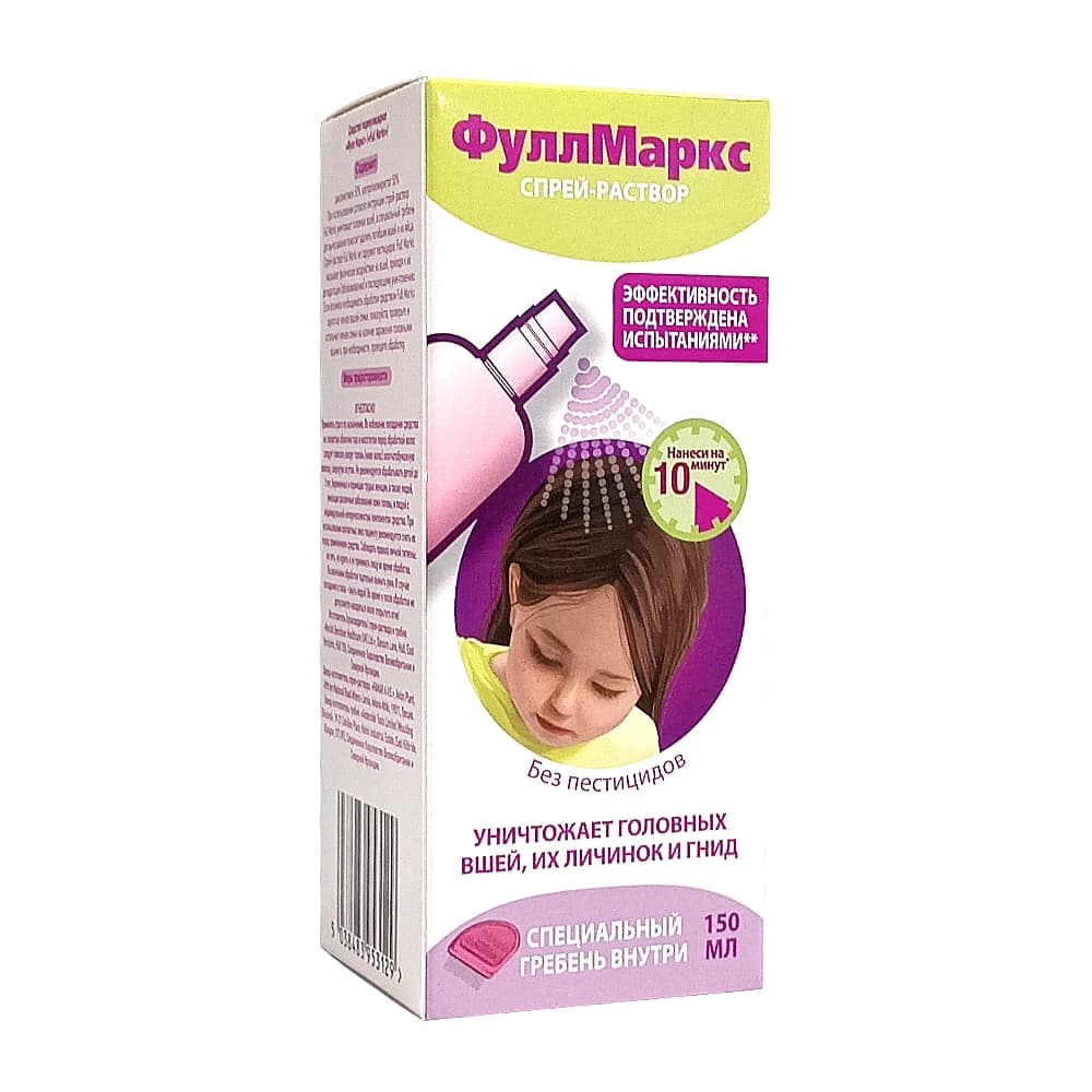 Фулл Маркс средство педикулицидное, спрей-раствор с гребнем, 150 мл.