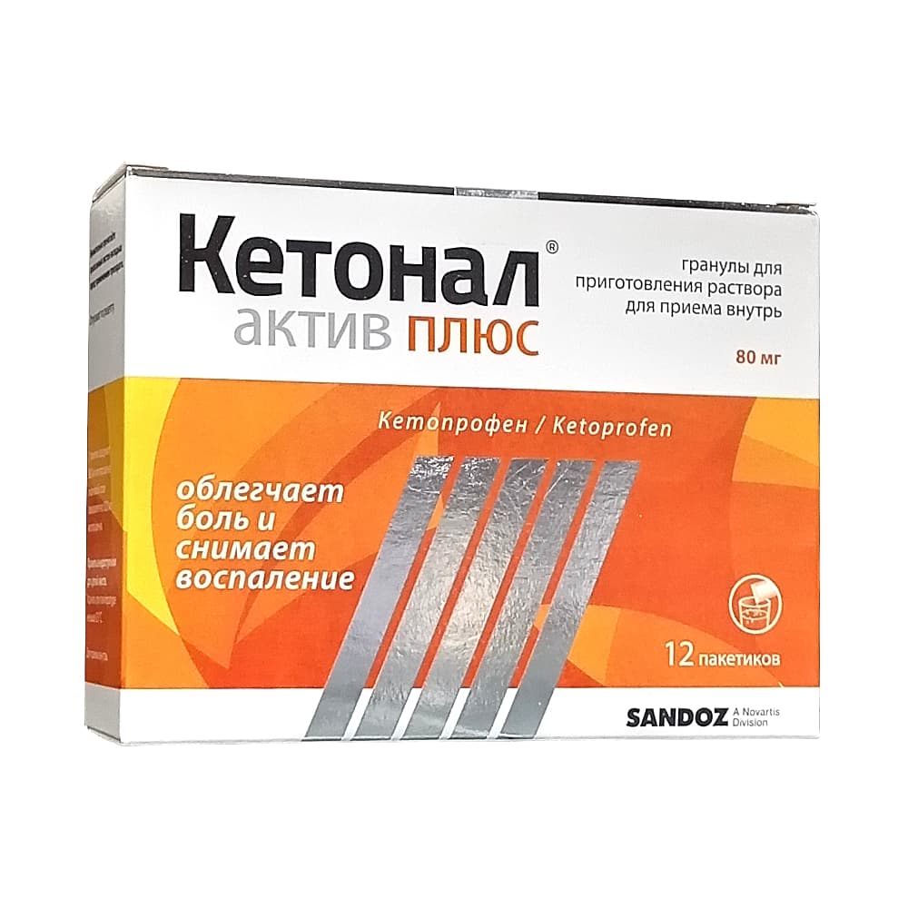 Кетонал Актив Плюс 80 мг, гранулы для приготовления раствора для приема внутрь, 12 шт.