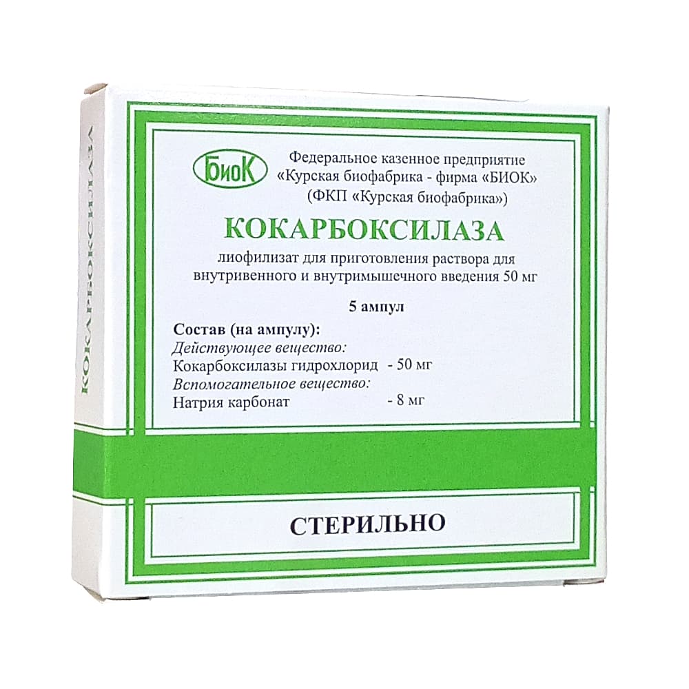 Кокарбоксилаза 50 мг лиофилизат для приготовления раствора для внутривенного и внутримышечного введения ампулы 5 шт