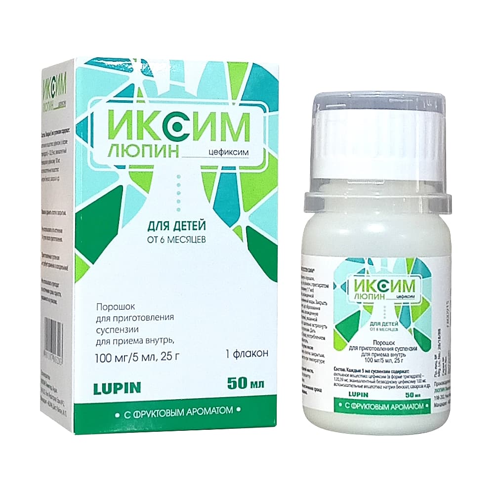 Иксим Люпин 100 мг/5 мл, порошок для приготовления суспензии для приема внутрь, 25 г.