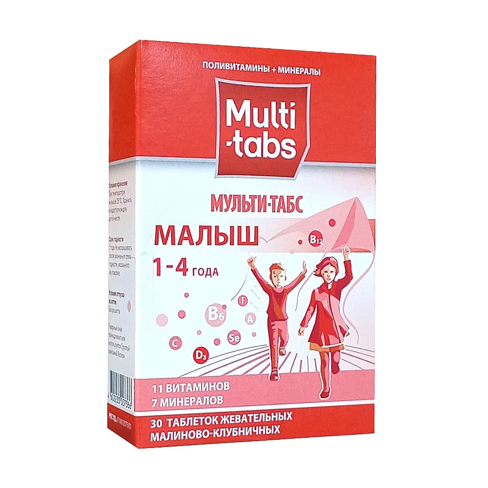 Мульти-табс Малыш таблетки жевательные 30 шт. Малина + клубника