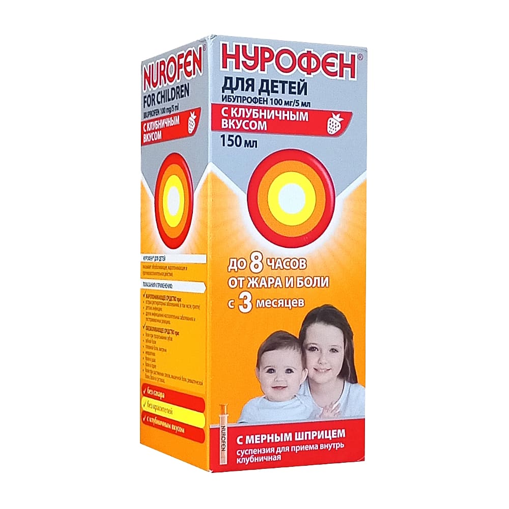 Нурофен суспензия для детей с клубничным вкусом, 150 мл.