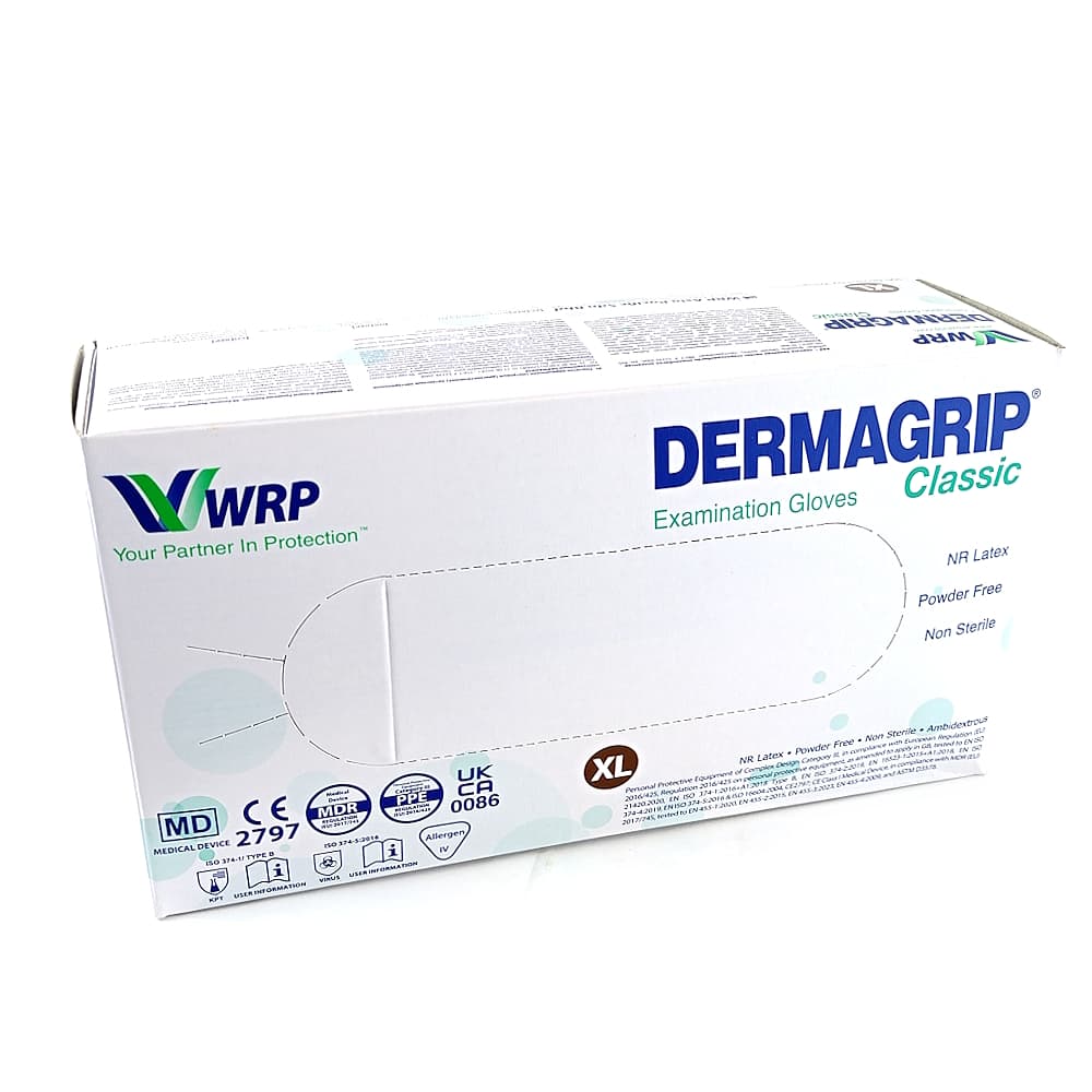 Перчатки DERMAGRIP «Classic» обладают ярко-выраженной текстурой по всей поверхности, на 30% толще стандартной смотровой перчатки, при этом обеспечивают высокую тактильную чувствительность, двойная хлоринация.