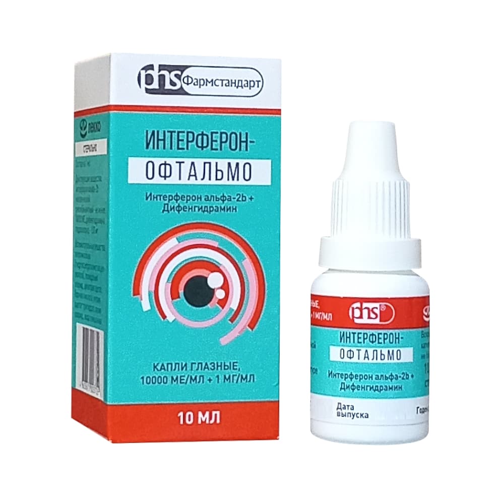 Интерферон альфа – 2b человеческий рекомбинантный обладает широким спектром противовирусной активности, иммуномодулирующим, антипролиферативным действием. Дифенгидрамин - блокатор Н1-гистаминовых рецепторов, оказывает противоаллергическое действие, уменьшает отек и зуд конъюнктивы.