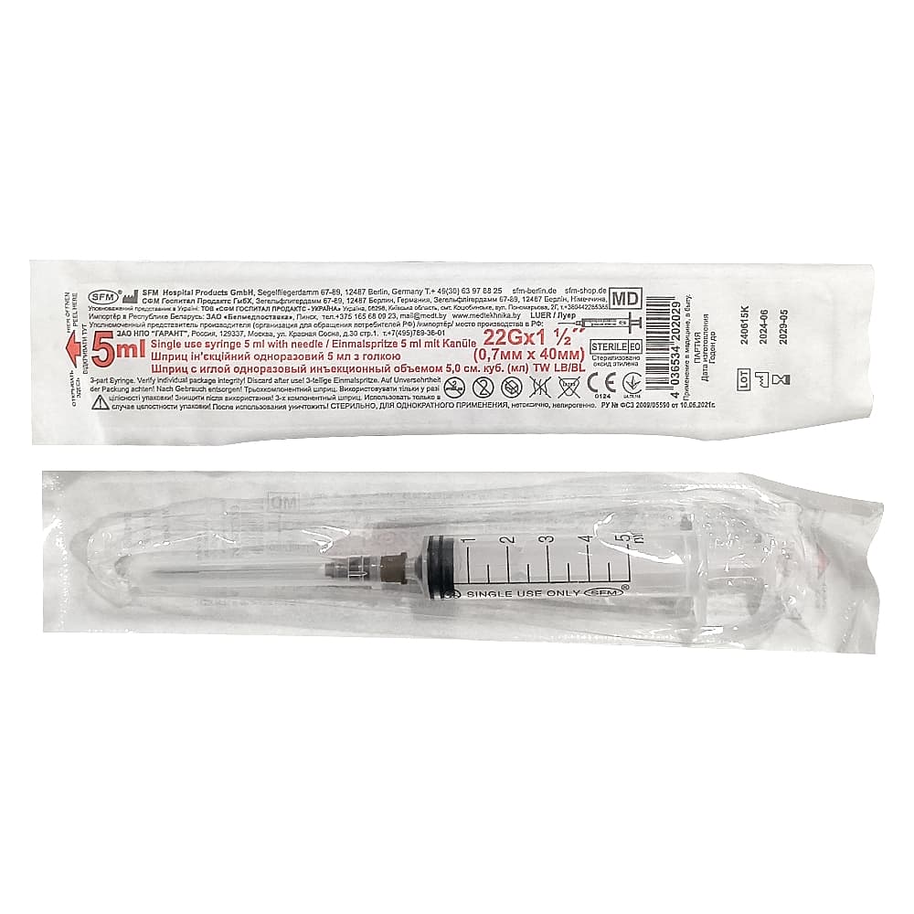 СФМ шприц одноразовый 3-Х комп 5МЛ 22G N1
