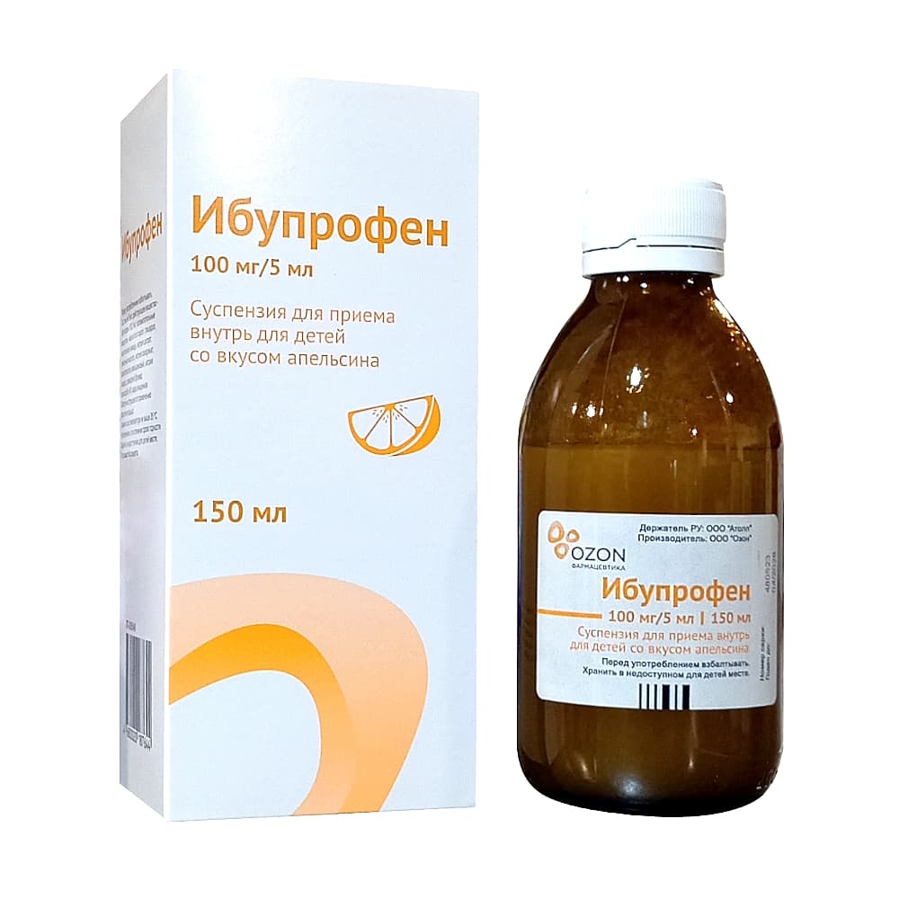 Перед употреблением тщательно взболтайте флакон. 5 мл препарата содержат 100 мг ибупрофена или 20 мг ибупрофена в 1 мл.