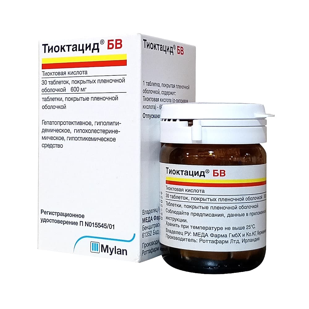 Тиоктацид® БВ (быстрого высвобождения) представляет собой оптимизированную лекарственную форму для перорального применения, которая позволяет избежать высокой вариабельности концентрации тиоктовой кислоты в плазме крови.
