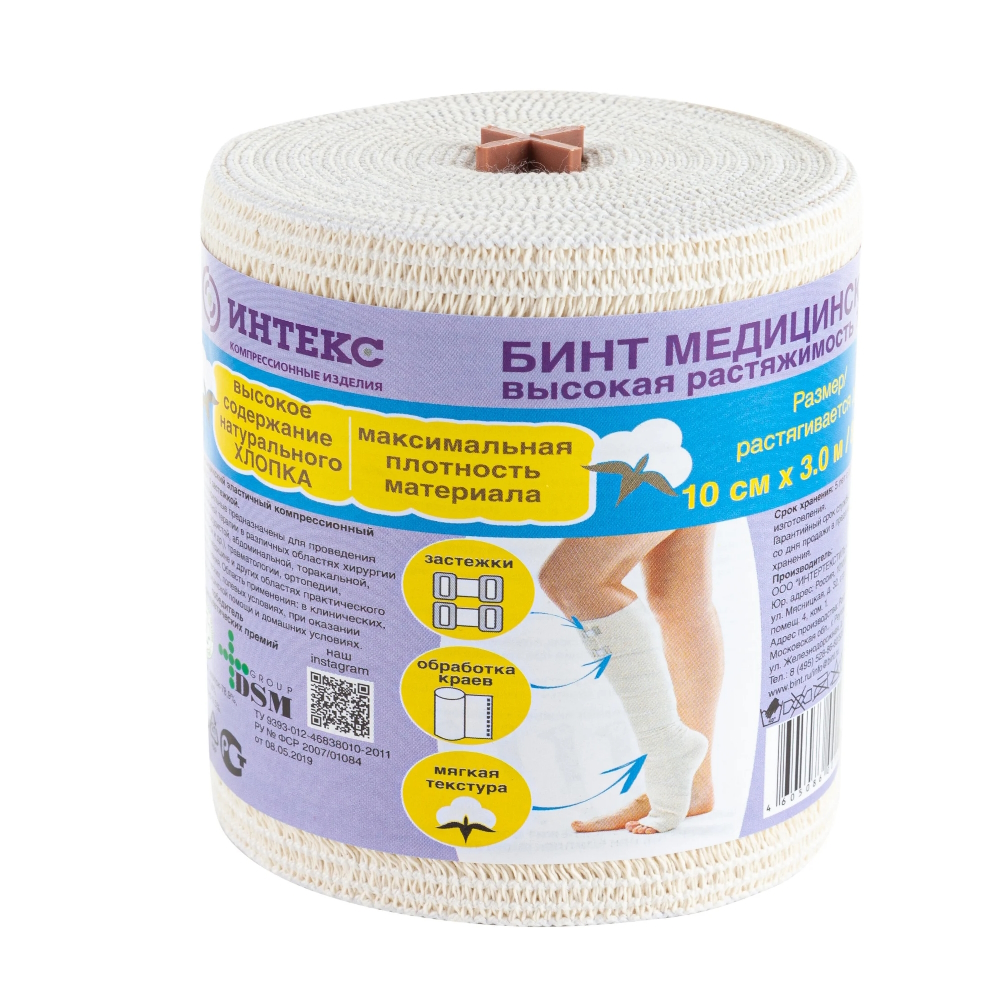 Бинт эластичный высокая растяжимость 10см / 1,5м. Интекс