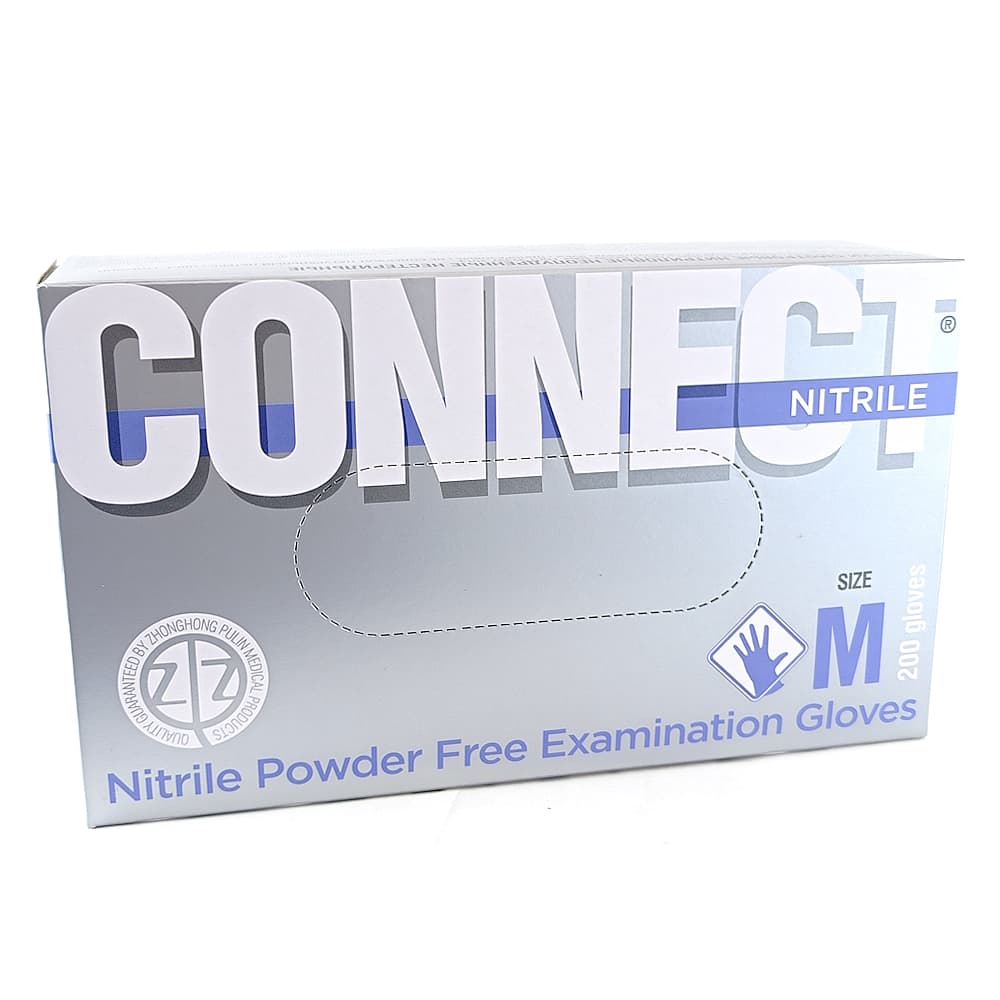 Смотровые перчатки Connect нестерильные и нитриловые размером М, №100